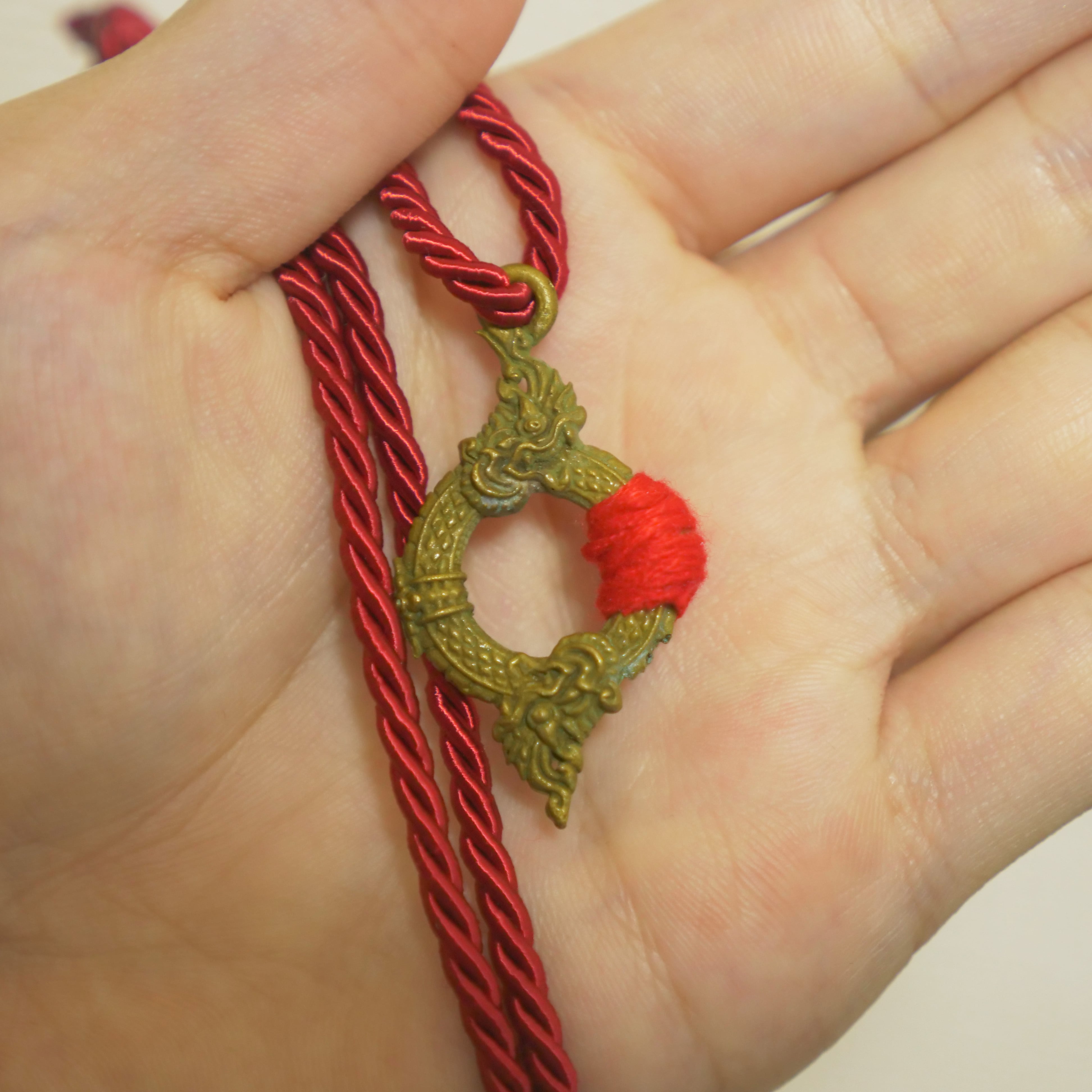 形状はリングで、ナーク・ラートがとぐろを巻く姿と同時に、龍の眼を表現。全体で龍王の本体そのものを表しています。丸環のあるものは龍王の右眼、ない物は左眼を表わし、あなたの右脳、あるいは左脳にそれぞれ働きかけ、潜在能力を引き出すとされます。