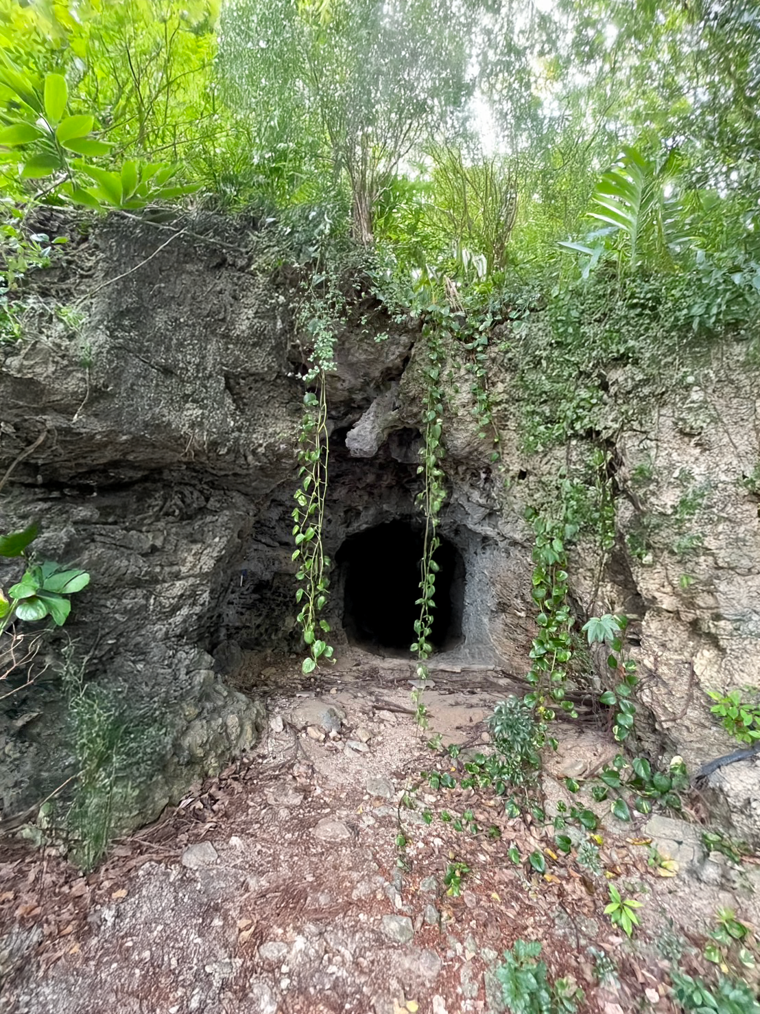 ↑ナリ師匠が修行する洞窟の入り口(上)と出口(下)。